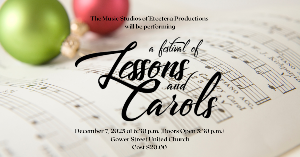 The mass choir features singers from the performance groups at the Music Studios of Etcetera Productions: the Junior Show Choir, the Show Choir, and the Ensemble. The performers’ families and the music studio teachers, Carl Goulding, Justin Goulding, Megan Barnes, and Rebecca Goulding Arsenault, look forward to another beautiful musical celebration of the Christmas season.